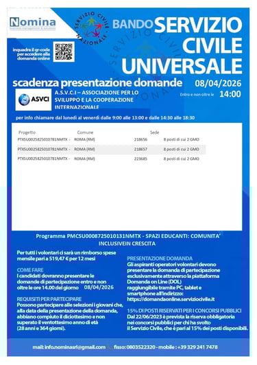 Consulta le schede di sintesi per il servizio civile, tutte disponibili in un'unica pagina.